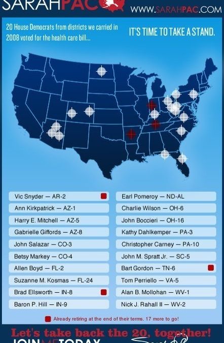 The map that Sarah Palin has on her PAC site “targeting” democratic lawmakers.