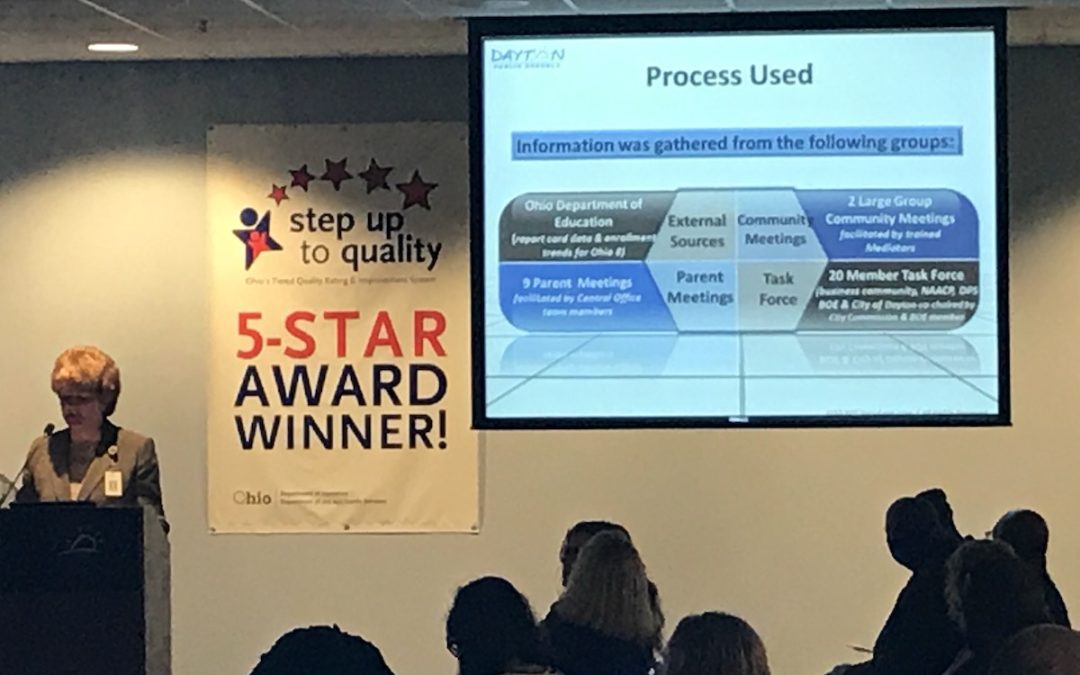 Lolli making a presentation on rightsizing the Dayton Public Schools District with input from the illegal task force