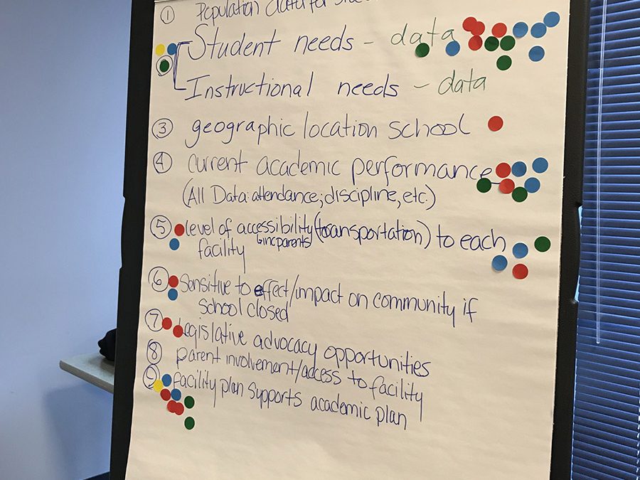 Dayton Public Schools closing task force priorities. Photo by David Esrati