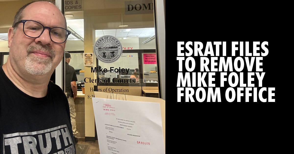 Dayton: At 8:43 AM, citizen journalist David Esrati filed a Quo Warranto with the 2nd District Court of Appeals, to remove convicted felon, Mike Foley from the Clerk of Courts office. The filing is below. A quo warranto is a legal proceeding, used to challenge a person’s right to hold a public office. It essentially asks, “by what authority?” do you hold this position, and is used to determine if someone is illegally holding office or exercising powers they are not entitled to.