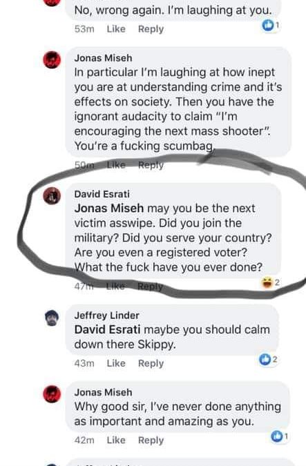Screenshot of an out of context conversation about the obvious advantages of getting killed in a mass shooting vs just a regular old murder.
