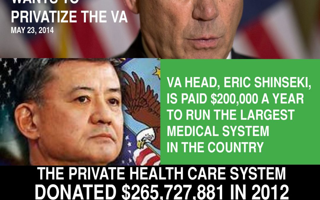 John Boeher wants to privatize the VA, while Gen Shinseki makes $200K, and the health care industry donates $265 million to politicians